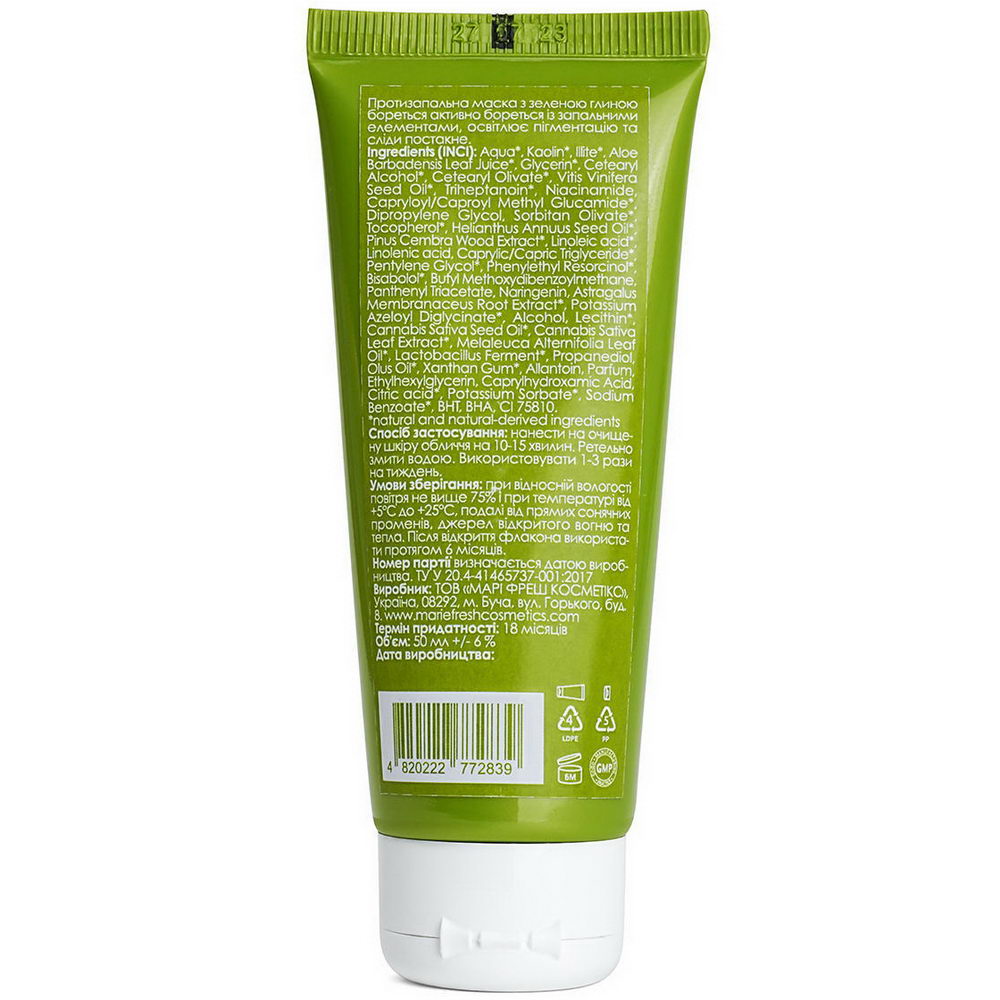 Протизапальна маска Green Clay Mask Marie Fresh Cosmetics 50 мл