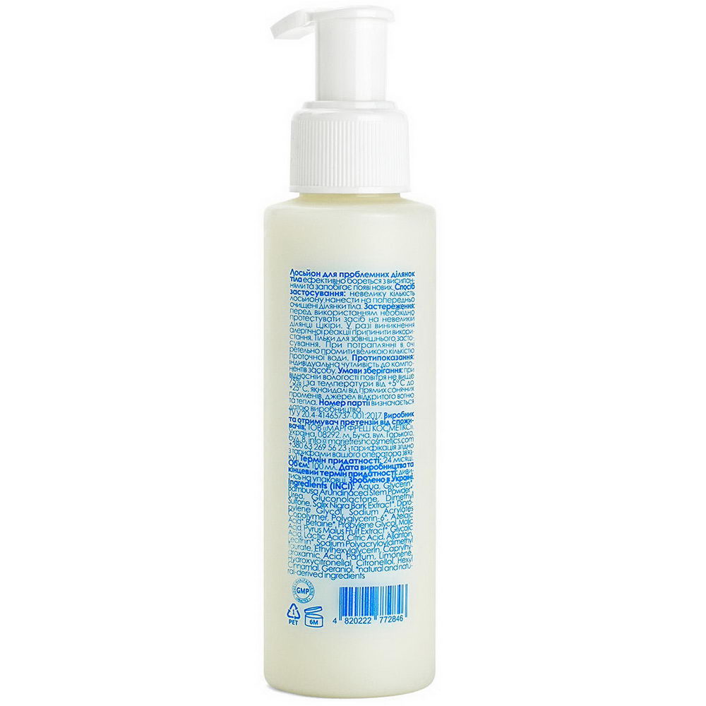 Спосіб використання: 1. Невелику кількість лосьйону нанести на попередньо очищені проблемні  ділянки тіла.