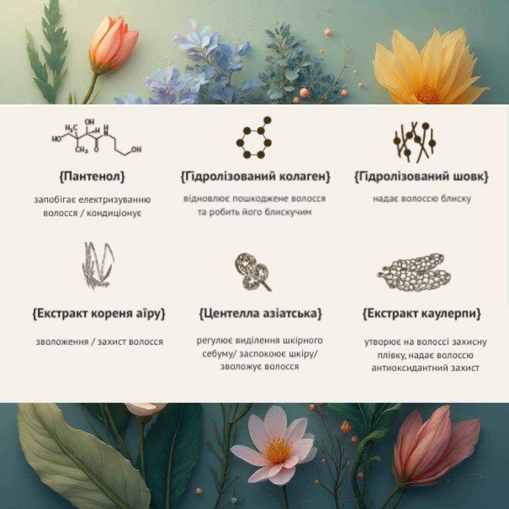 Шампунь збагачений гідролізованим колагеном та шовком глибоко живить, відновлює волосся та надає йому неймовірного блиску.