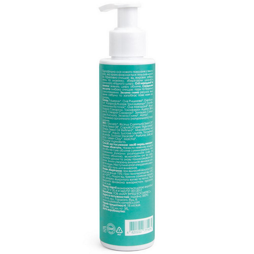 ГІДРОФІЛЬНА ОЛІЯ OIL-TO-MILK CLEANSER ДЛЯ ЖИРНОЇ ТА КОМБІНОВАНОЇ ШКІРИ Мультифункціональний та фізіологічний очищувальний засіб нового покоління з неймовірно легкою, комфортною текстурою та з безпечним натуральним складом. Гідрофільна олія розроблена на основі двох емульгаторів, які забезпечують густу текстуру та ефективно розчиняють жирові забруднення, макіяж та шкірний себум. Текстура засобу покроково трансформується з олії в гель та з гелю в молочко. Таким чином очищення відбувається дуже делікатно, без стресу для чутливої шкіри. Завдяки олії насіння коноплі, саліциловій кислоті та зеленій глині засіб очищує пори, заспокоює шкіру, запобігає появі висипань та зменшує надмірний блиск шкіри.