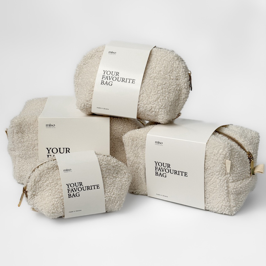 Косметичка Miso Teddy білого кольору середня квадрат