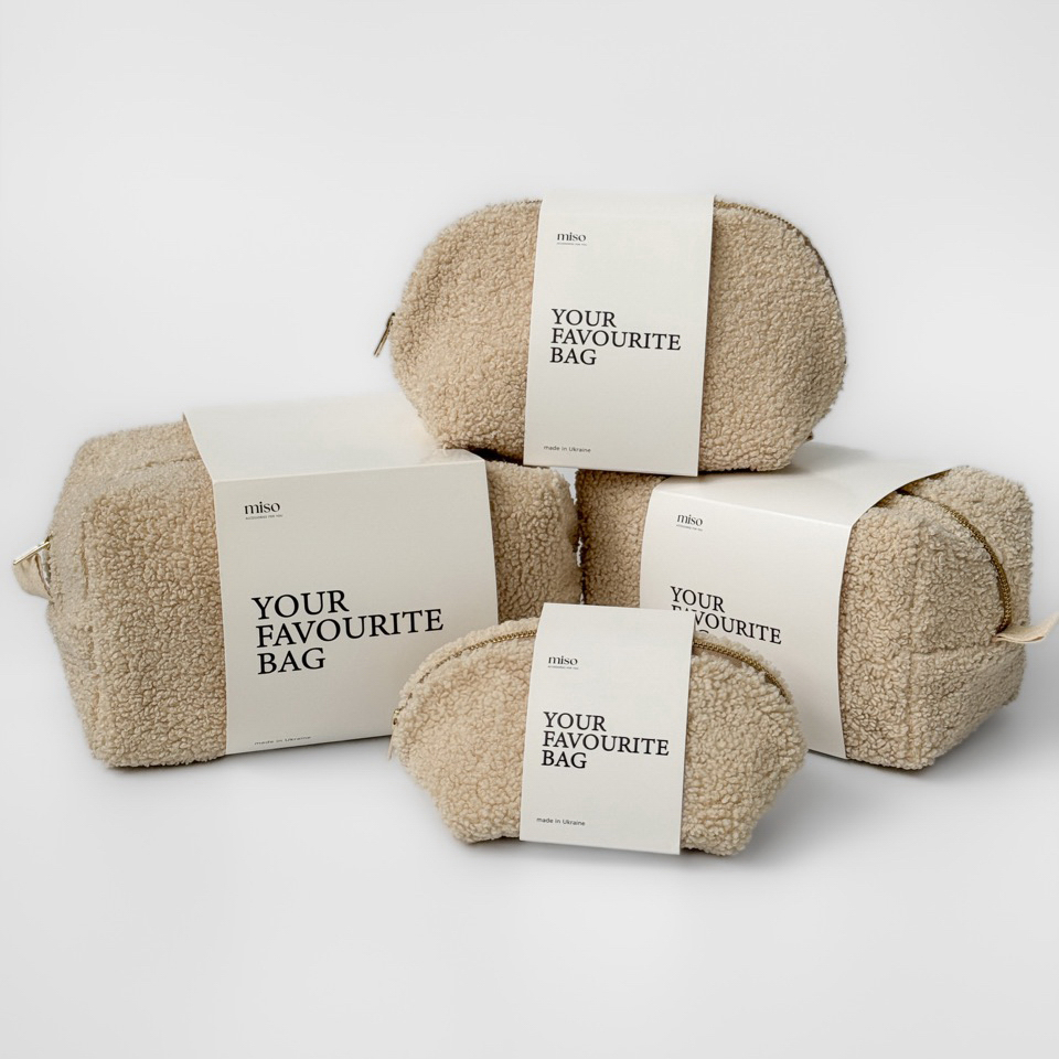 Косметичка Miso Teddy бежевого кольору середня квадрат