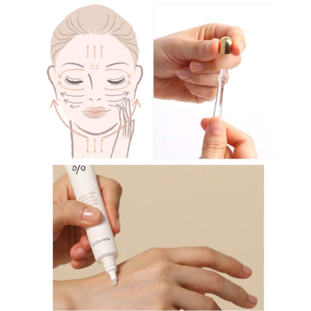 Зона під очима найчутливіша, чутлива до впливу погоди, перепаду рівня вологості, температури, рівня забрудненості навколишнього середовища та сонячних променів. Комбінація прополісу та колагенових капсул у новому кремі Dr.Ceuracle Royal Vita Propolis 33 Capsule Eye Cream робить шкіру більш пружною, відновлює цілісність шкірних покривів, вирівнює рельєф, прискорює процеси оновлення. Унікальність крему для шкіри навколо очей Dr. Ceuracle Royal Vita Propolis 33 Capsule Eye Cream не тільки у складі, але й технології колагенових капсул Vita. Vita колагенова капсула містить гідролізований колаген, аскорбіл тетраізопальмітат (Ascorbyl Tetraisopalmitate) та аскорбіл пальмітат (Ascorbyl Palmitate), які легко проникають у шкіру та мають виражену дію омолодження. Проведено клінічні тести в Human Skin Clinical Trial Center, які показали покращення стану шкіри навколо очей, зменшилась виразність зморшок та пігментації.